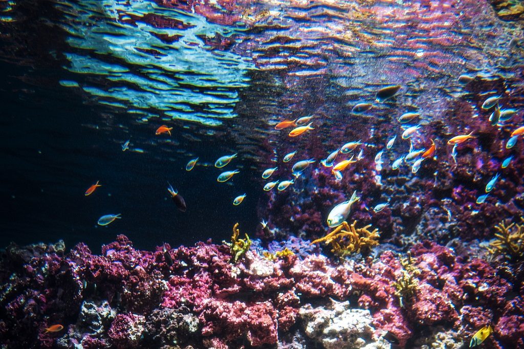 「世界の海」の約30の水槽でバラエティ豊かな魚や生きものを観察