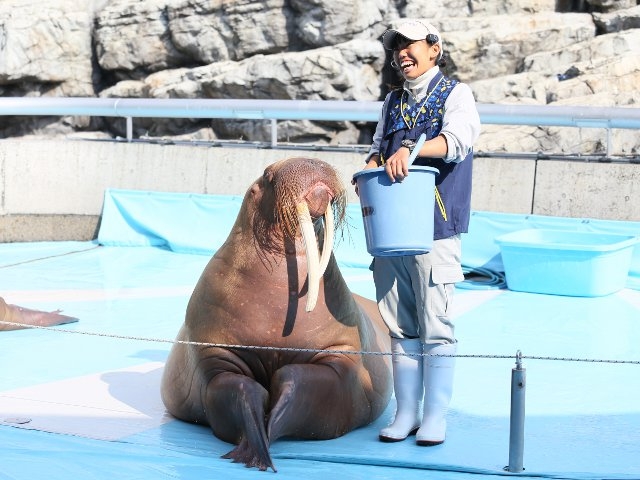 「寒帯ゾーン」にいるセイウチは、キュートなショーを見せてくれるうみたまごの人気者。「うみたまパフォーマンス」や「セイウチ水槽」でかわいい姿を観賞できます。その他には、同じくショーで人気のイルカやアゴヒゲアザラシのほか、トドやペンギン、コツメカワウソなども暮らしています。
