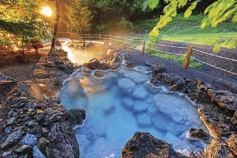 なかでも大自然に溶け込んだ庭園岩風呂が自慢。光の加減でお湯がターコイズブルーやエメラルドに変色し、幻想的な雰囲気を演出してくれます。