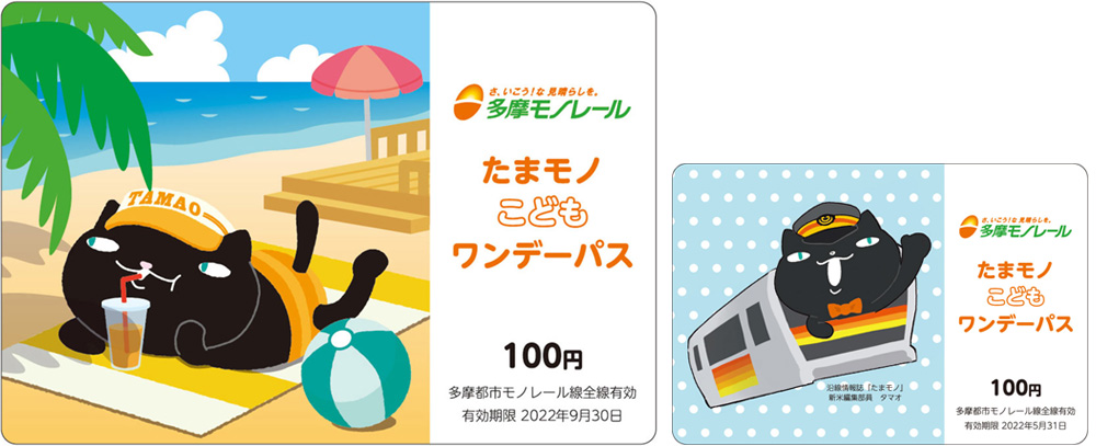 「たまモノこどもワンデーパス」夏バージョン(左)、ゴールデンウィークバージョン(右)