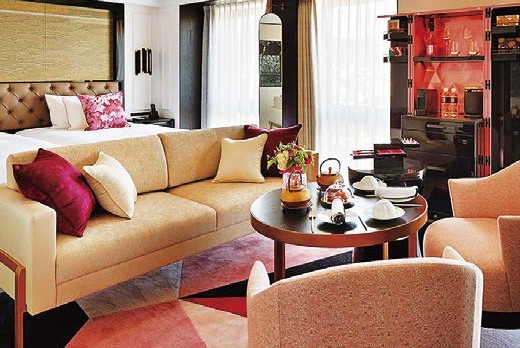 ラグジュアリーな客室。気品ある洋のデザインと和の素材と技術を融合させたこだわりの空間です。