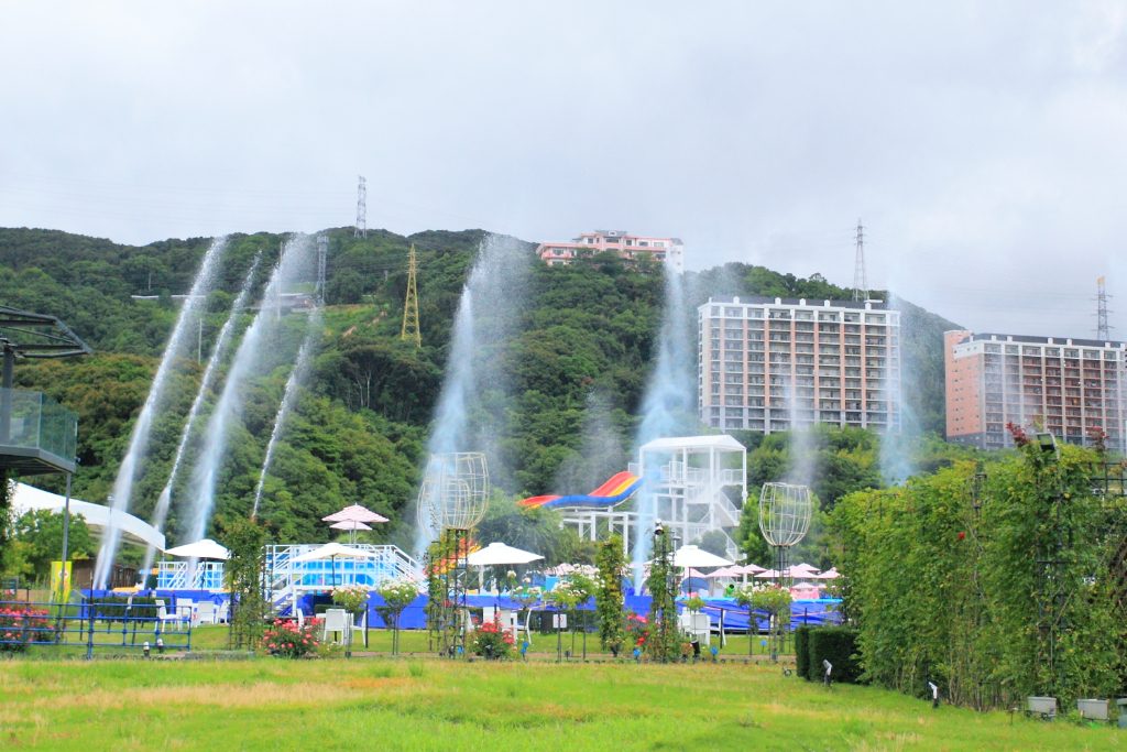 取材時は残念ながら雲が多かったのですが、気温は30℃越えの真夏日でしたので、プールで遊ぶ人が多く見られました!