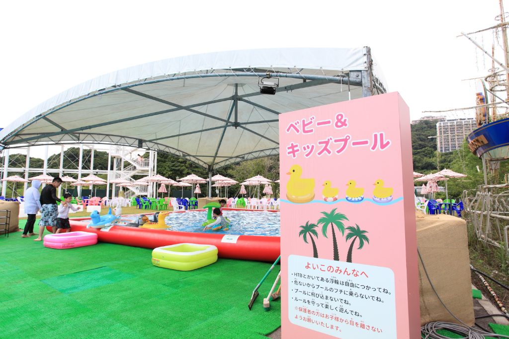 小さな子どもでも安心して遊べるベビー&キッズプールがあります。近くにパラソル付きのテーブル&椅子があるので、ママパパもゆっくり見守れます。