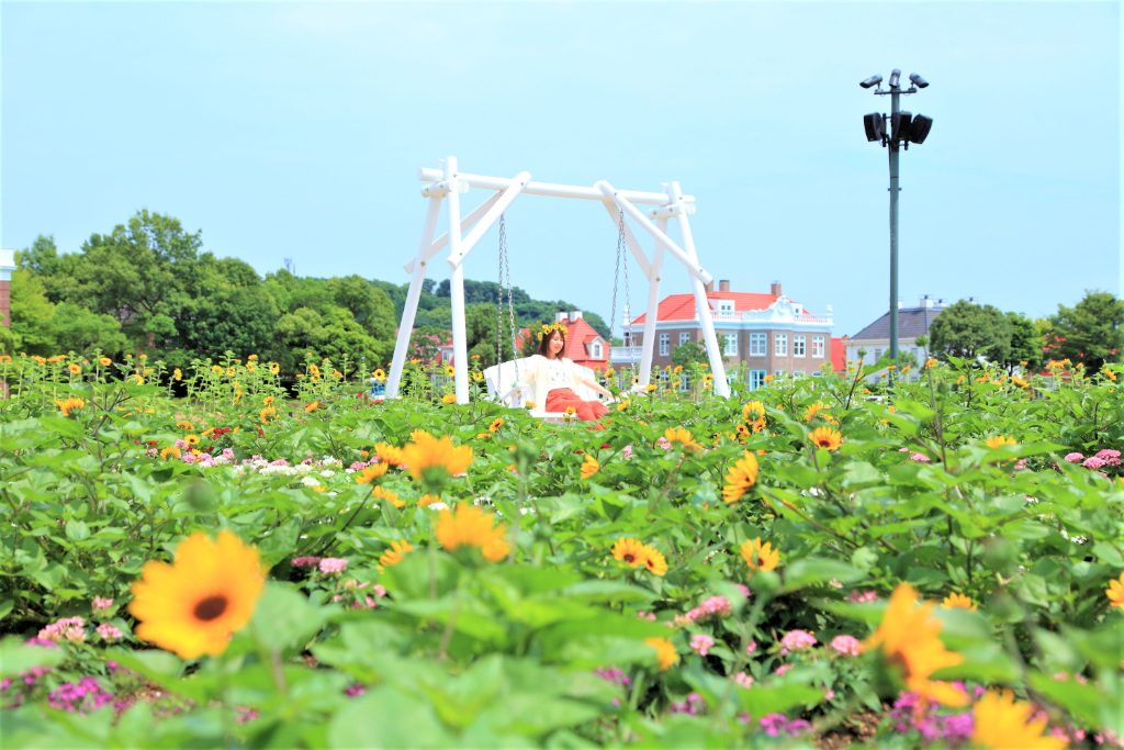 こんなに可愛い写真も撮れちゃいます。もう少しヒマワリが満開になるとベストですね。ママパパはぜひ子どもの可愛い写真を撮影してみてはいかがでしょうか。