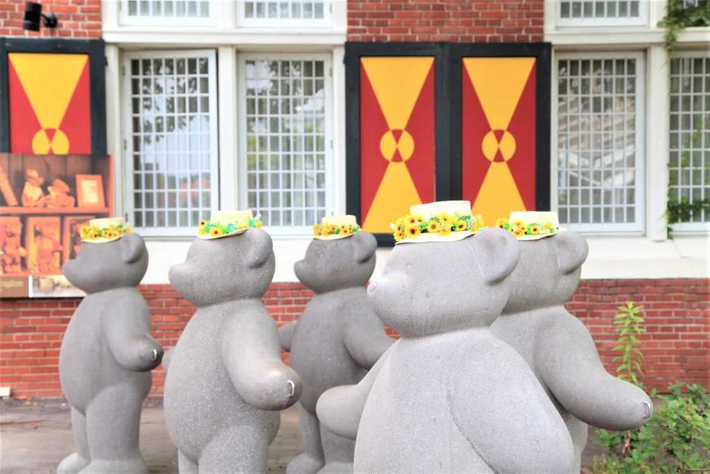 園内のスタッフや、ティディベアもヒマワリを身に着けていました。可愛いですね。どこにヒマワリがあるか探しながら歩くだけでもワクワクします。