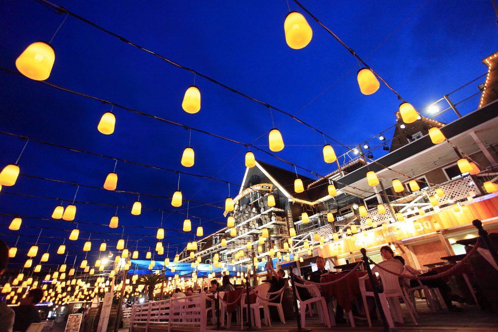 ランタンの灯りと人々の笑い声が合わさって、まるで南国にいるかのようです。