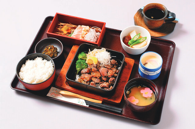 都城市の特産品である肉をテーマにリニューアル予定。「朝引き親鶏の炭火焼御膳」(1350円)は、昼でも宮崎名物の鶏炭火焼を食べたい!との声から生まれたランチメニューです。