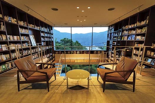 「箱根本箱(はこねほんばこ)」の蔵書は主に「衣・食・住・遊・休・知」の6つのジャンルで、洋書も含めて約1万2000冊。ロビー、レストラン、客室など、いたるところに「本と人との出会い」が演出されています。本離れが加速する昨今、二大出版取次会社の「日販」の保養所を本の魅力を伝える宿にしようと、3年の歳月を経て2018年8月にリニューアルしたもの。