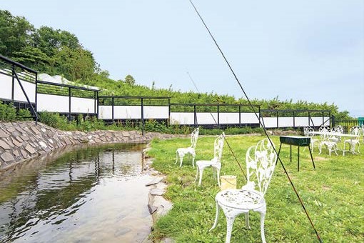 プライベートリバー付きの部屋では、直接釣りを楽しめます。