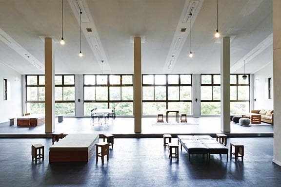 自然の中にたたずむフロントやカフェ、食事処が入るサロン棟。カフェでは不定期でイベントも開催。