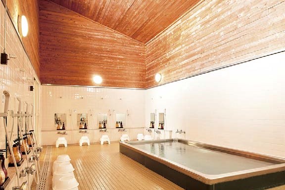 宿泊棟に隣接する浴室棟では、大きなお風呂に入って汗を流すことも。シャワーのみのサニタリー棟もあります。