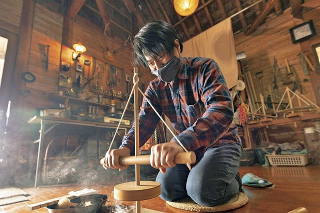 古代生活の基本、火起こしに挑戦しよう(別料金)。
