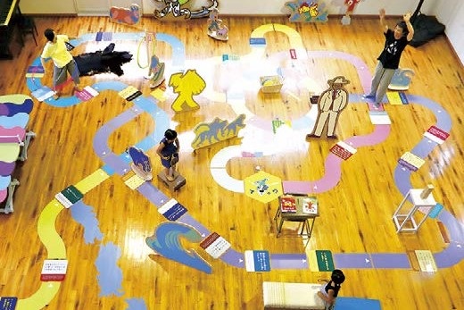 体育館では卓球やバスケットを楽しめるほか、さまざまな遊び道具が用意されています。