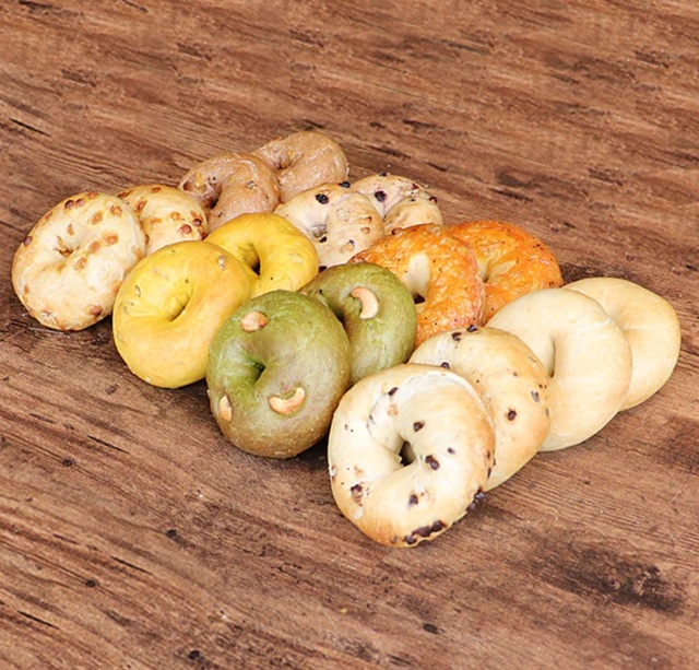 ラインナップは沖縄の食塩・シママースを使ったプレーンの他、アップルシナモンウォールナッツやキャラメルチョコレート、ゴーダチーズブラックペッパーなど、通常メニューだけで約20種類も(1個250円~)。期間限定品や大豆プロテインを練りこんだタンパク質豊富なものもあります。
