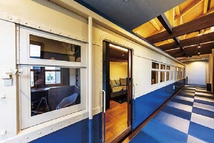 大正2年(1913)から昭和50年(1975)まで観光客らを乗せて走った旧耶馬渓鉄道の3両がホテルとしてリノベーション。建物は駅舎をイメージし、線路に枕木を敷いた上に停車中の1車両を貸し切ることができます。車内は運転席など当時のまま残し、リビングや寝室はそれぞれ車両ごとに「青の洞門・耶馬溪・国東」の自然、景観、文化をモチーフとしたデザインに。プラットホームから車両に乗り込めば、時空を超えた景勝地の旅へ誘われる趣向を堪能できます。
