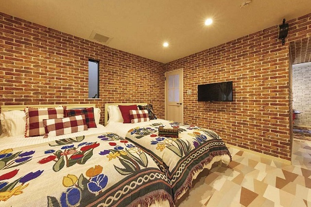 一棟貸しで、Sベッド×3、Wベッド×2の2つの寝室と布団1組を備えています(※施設最大収容人数は9名まで)。