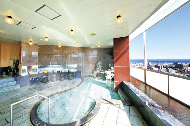 天城連峰を望む展望風呂や伊豆石を配した湯船なども。