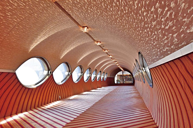 本館と別館をつなぐ円筒形の渡り廊下は魅惑の異次元空間。インスタ映えスポットとしても人気です。
