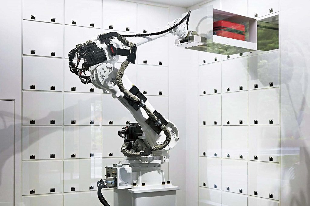ロボットクローク。宿泊の前後に利用できる有料ロッカー。ロボットアームの活躍を観察できます。