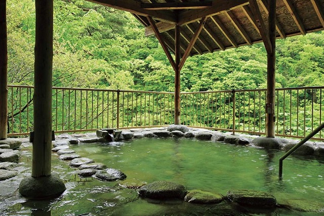 自然露天風呂が楽しめます。午後は予約にて有料で貸し切りも可。