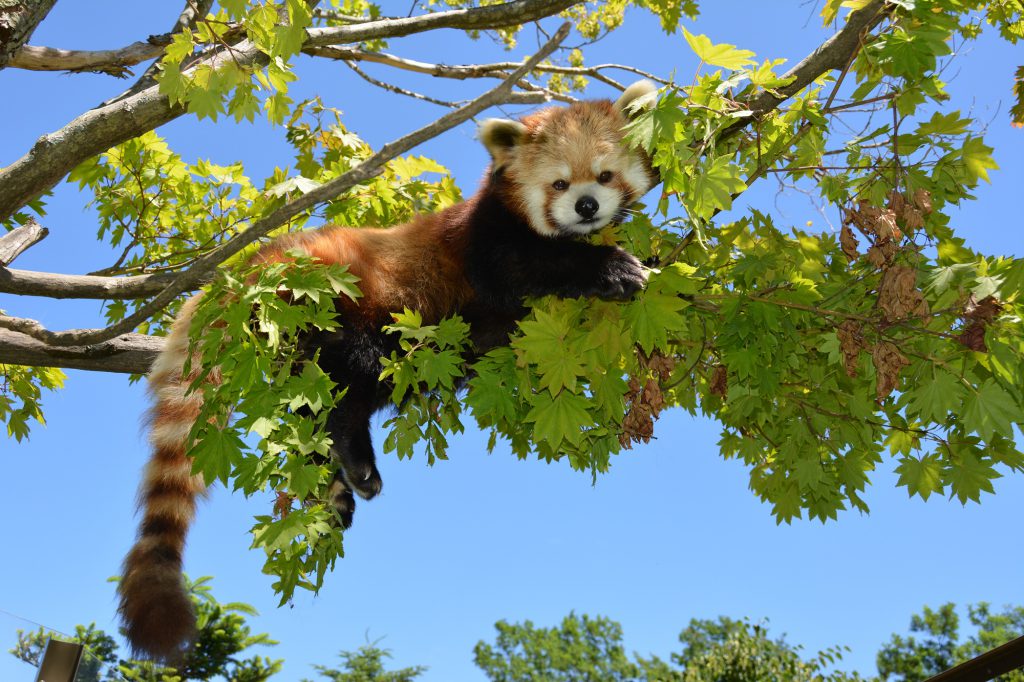 野生のレッサーパンダは朝夕に活動し、日中の暑い時間は枝の上で休んでいることが多いのですが、動物園では昼間でも食事をしたり歩き回ったりする姿が見られるので要チェック。土・日曜・祝日(ゴールデンウィークは除く)には、ガイド「レッサーパンダのおはなし」も開催されるので、ぜひ耳を傾けてみましょう(変更・中止の場合あり)。