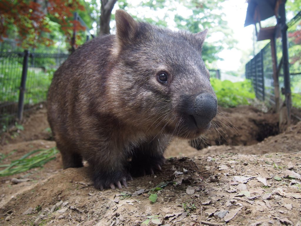 こちらは、オーストラリアに生息しているウォンバット。ずんぐりとした体型とつぶらな瞳、小さな耳がチャームポイントです。夜行性で昼間は巣穴にもぐっていることが多いのですが、曇りの日には外を歩き回る姿が見られます。