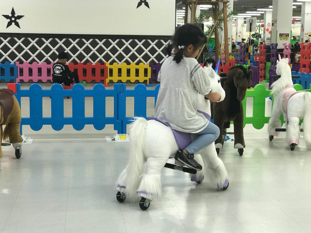 屋内の施設でありながら、ゴーカートをはじめミニエクスプレス電車(ミニレールウェイ)やおもちゃの動く馬に乗れるポニーライド、トランポリン、ふわふわボルダリングやふわふわ滑り台など、体を動かして遊べる遊具が多いことが特長です。その遊具の多さは目を見張るほど。子どもたちも夢中になって遊びます。