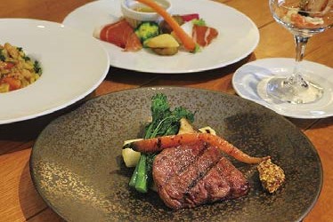 夕食は、館内のレストランで。地元食材の炭火焼などをいただけます。