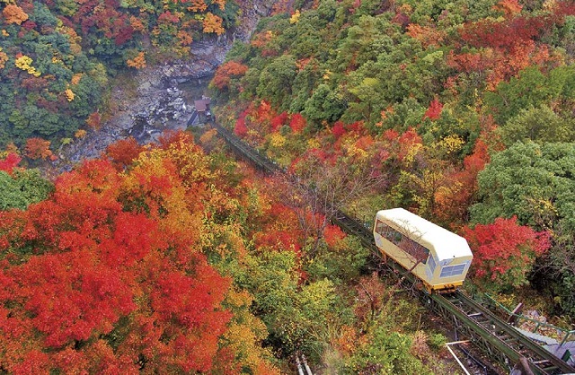 露天風呂へ向かうケーブルカーは途中の風景も魅力。