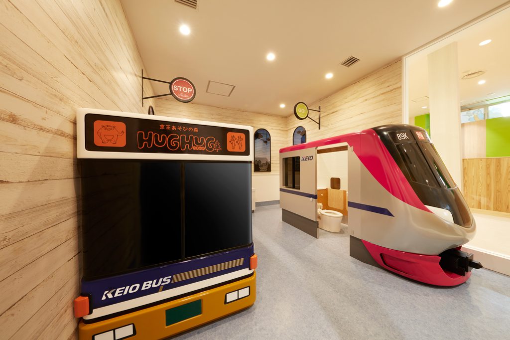 キッズトイレは京王線の車両5000系と京王バスを模したフォルムで、トイレトレーニング中の子供にもうってつけ。喜んでトイレに行ってくれそうです。