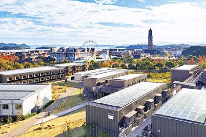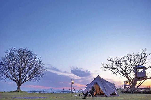 鹿児島県・大隅半島の錦江湾(きんこうわん)を見下ろす高台に立ち、「日本一海に近い小学校」とよばれていた旧鹿屋市立菅原小学校。120年の歴史を刻んで平成25年(2013)に廃校となりましたが、絶景が魅力の体験型宿泊施設&観光拠点に生まれ変わりました。黒板のある教室に二段ベッド、校長室や職員室にはツインベッドが置かれた宿泊所のほか、食堂やカフェ&バー、チョコレート工場、BBQ施設も入る複合施設です。工作体験教室に参加したり、近くの海や山でマリンスポーツや登山などを楽しんだり、かつての学び舎で、子どもといっしょに思いきり羽を伸ばしましょう。
