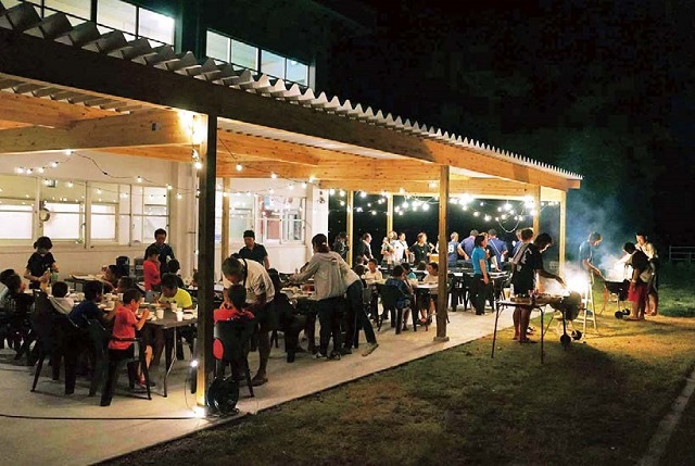 屋根付きBBQ場。ユクサ特製BBQセットは要予約。