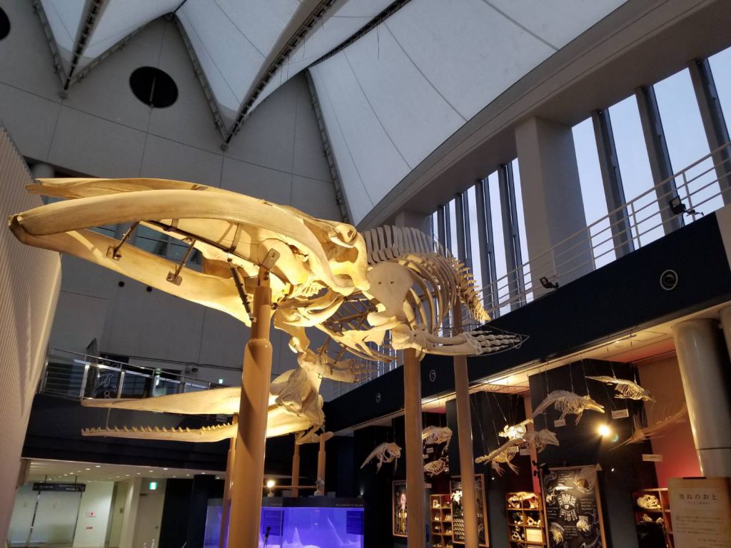 30周年を記念して2019年3月にオープンした「ほねのおと~HONE NOTE~」。マッコウクジラの頭骨とクロミンククジラの全身骨格を中心に、バンドウイルカやカマイルカ、ゴマフアザラシなど海の生きものの骨を展示する常設ゾーンです。マッコウクジラの頭骨は5.4m、クロミンククジラの全身骨格は全長8.9m!迫力の大きさですね。骨が示す生きものの生態やヒミツを「ほねのおと」(さまざまな擬音)で表現した解説付きで学べる展示です。