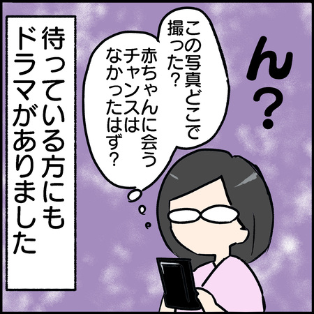 ……ってあれ? 新生児への面会は中学生以上だけのはず。2歳の長女を連れた夫は規定では赤ちゃんに会えないはずでは? この写真、どうしたの!?