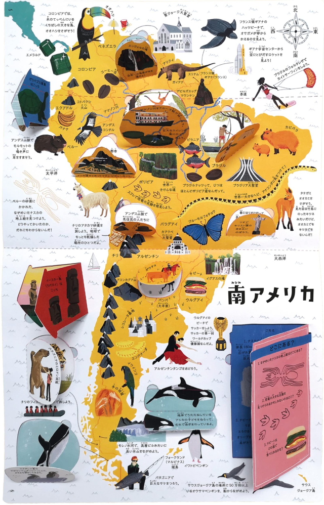全ページに子どもが大好きな「しかけとびら」があり、各エリアのトリビアやクイズを掲載。たくさんのイラストとカラフルな地図で世界の姿、各地の特色、動物、歴史など、盛りだくさん!飽きずに読み進めることができます。