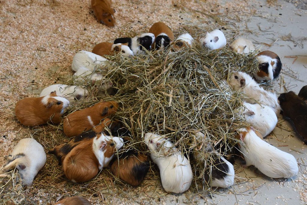 常時180頭ほどいるモルモットはすべて園内生まれ。「赤ちゃんのおうち」では、生まれたばかりの赤ちゃんや子育ての様子も見ることができます。