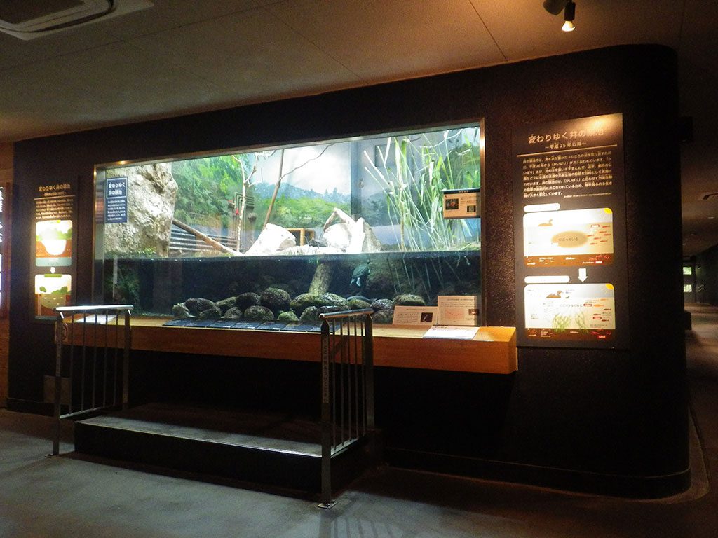 動物園と同じチケットで入れる水生物館(分園)にも、ぜひ立ち寄ってみましょう。入り口付近にあるタッチ水槽では魚にさわることができます。魚のほかにもカエルやイモリ、ゲンゴロウなど水辺の生き物が幅広く展示されています。小さいながらも水辺の環境を知ることができる工夫が散りばめられていて、学びや発見がいっぱいです。