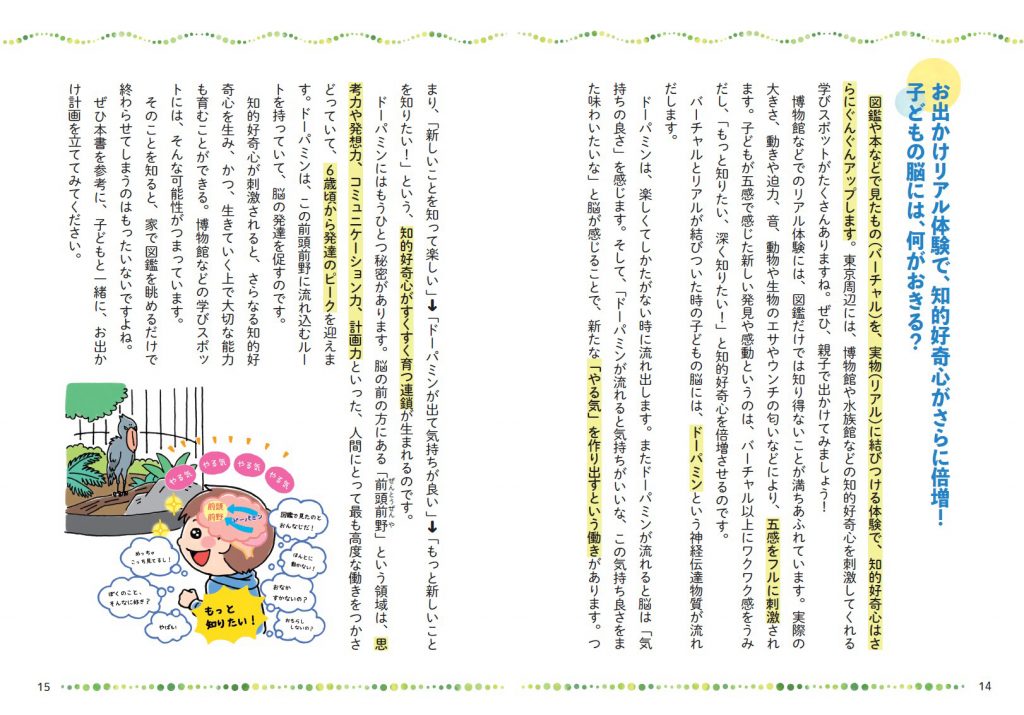 実は、おでかけ前に自宅にある図鑑や関連本を親子で一緒に読むことは、より知的好奇心を育むのに効果的なんです。子どもだけでなく親自身もワクワクする気持ちをもちながら一緒に楽しむことが、子どもの興味関心を広げるのになにより大切なことなのです。