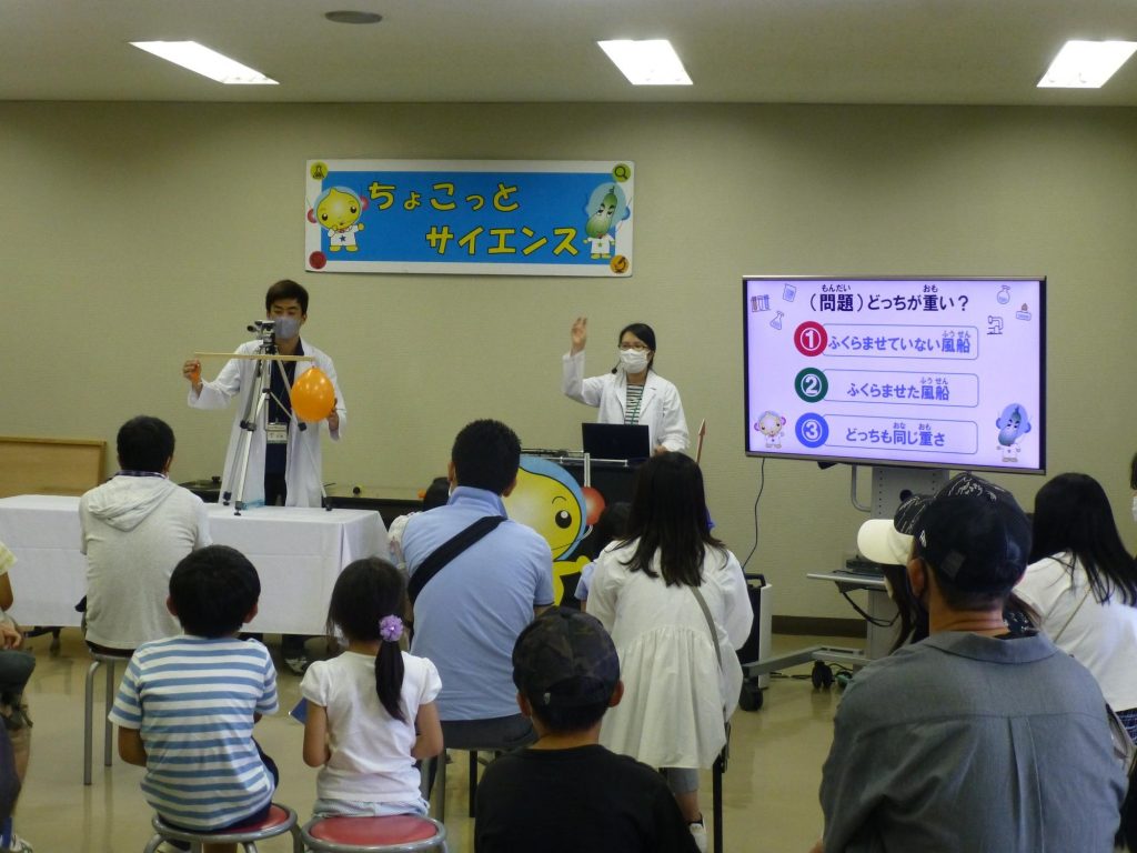 身の回りにある科学を紹介する実験ショー「ちょこっとサイエンス」。科学を利用したマジックやミニ空気砲など、さまざまなテーマで行われています。※写真は過去の開催時の様子