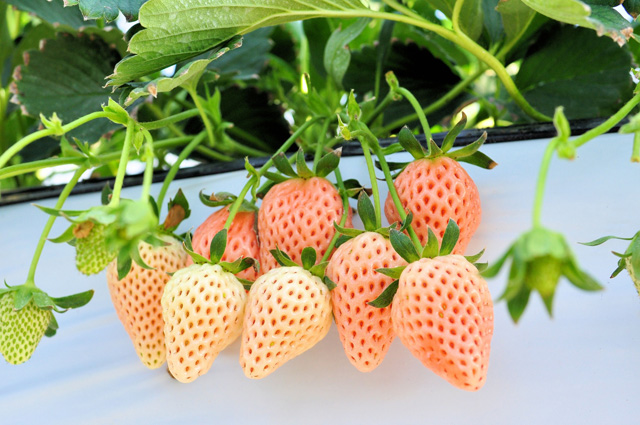 いちごの品種改良で生まれた、日光に当たってもアントシアニンが合成されにくく、果皮が白っぽいまま完熟する品種を白いちごと呼びます。