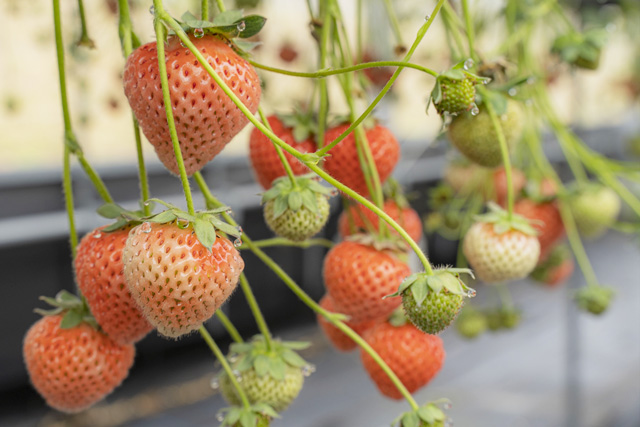 高設養液栽培方法により、きれいなイチゴを立ったまま採ることができる農園。ミツバチを使って自然交配させるなど環境に配慮した栽培方法を採用している。広々とした通路があり、車椅子、ベビーカーも入園OK。