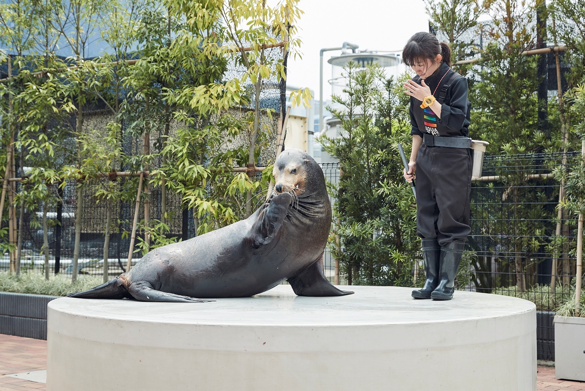 「フレンドリースクエア」は、小さな子供におすすめの屋外広場です。人気のアシカやペンギンが披露する「ミニパフォーマンス」を間近で楽しめます。