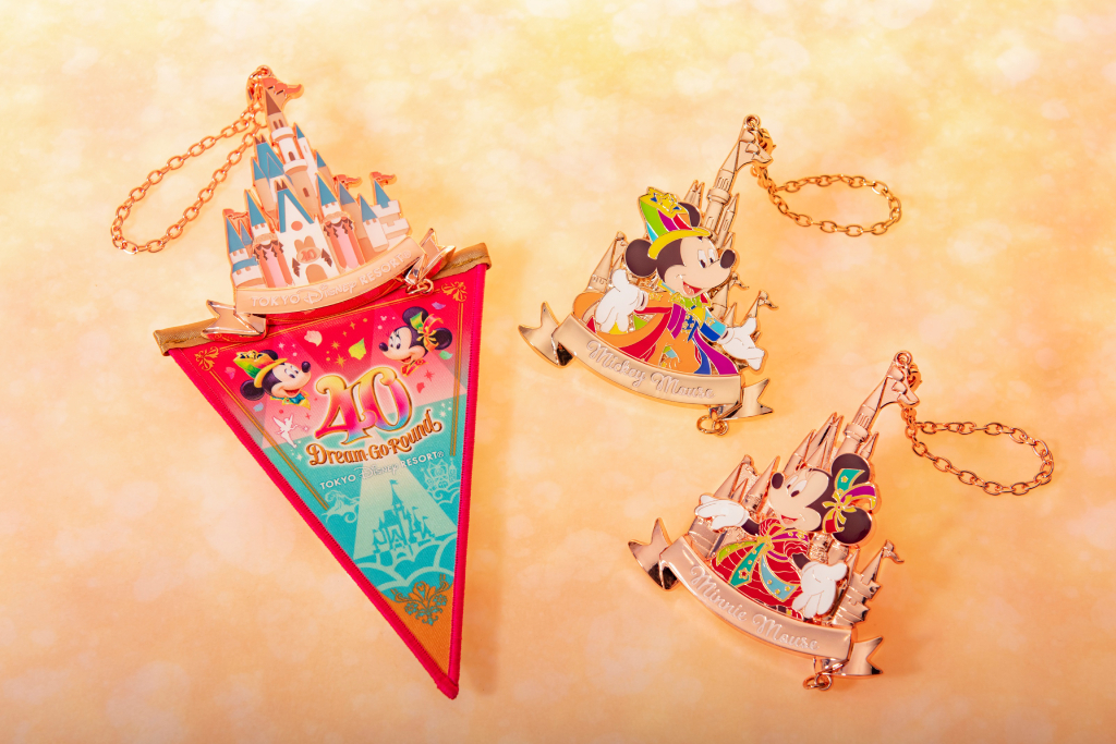 「東京ディズニーリゾート・バケーションパッケージ」では、プランに含まれるオリジナルグッズの選択で、ミッキーマウスとミニーマウスが40周年をお祝いしているローズゴールドのバッグチャームを選べます。バケーションパッケージの詳細については東京ディズニーリゾート・オンライン予約・購入サイトにてご確認ください。