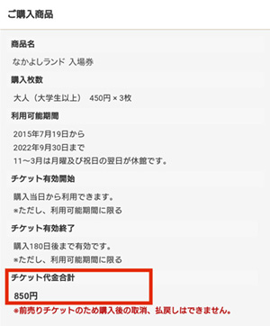 チケット代金合計に割引が適用されているかご確認の上、購入を確定してください。