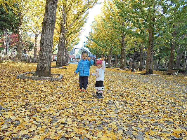 イチョウの並木が絵画のような「プロムナード」も、お弁当の後の散歩にぴったり。紅葉の季節は色鮮やかな落ち葉拾いも楽しそうですね。