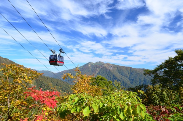 春は残雪と新緑の風景が広がり、夏の山々は緑で覆いつくされた圧巻の景色。秋の紅葉シーズンはまるで色とりどり絨毯の上をロープウェイが飛ぶように運行し、標高差による色づきのグラデーションを楽しめるでしょう。