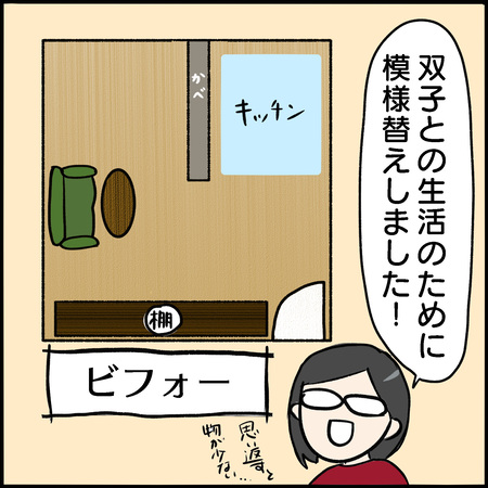 まず、双子をお世話する部屋づくり。双子が家に来る前の我が家は、ざっくりいうと1Fにキッチンとリビング、2Fに寝室と仕事部屋。必要に応じて1Fと2Fを行き来していたのですが……