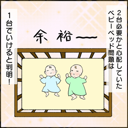 でもベビーベッドは場所を取りますよね。2台置くのは難しい。それによく見てみると案外大きいかも? もしかして1台で2人寝かせられるかも! 試してみたところ……