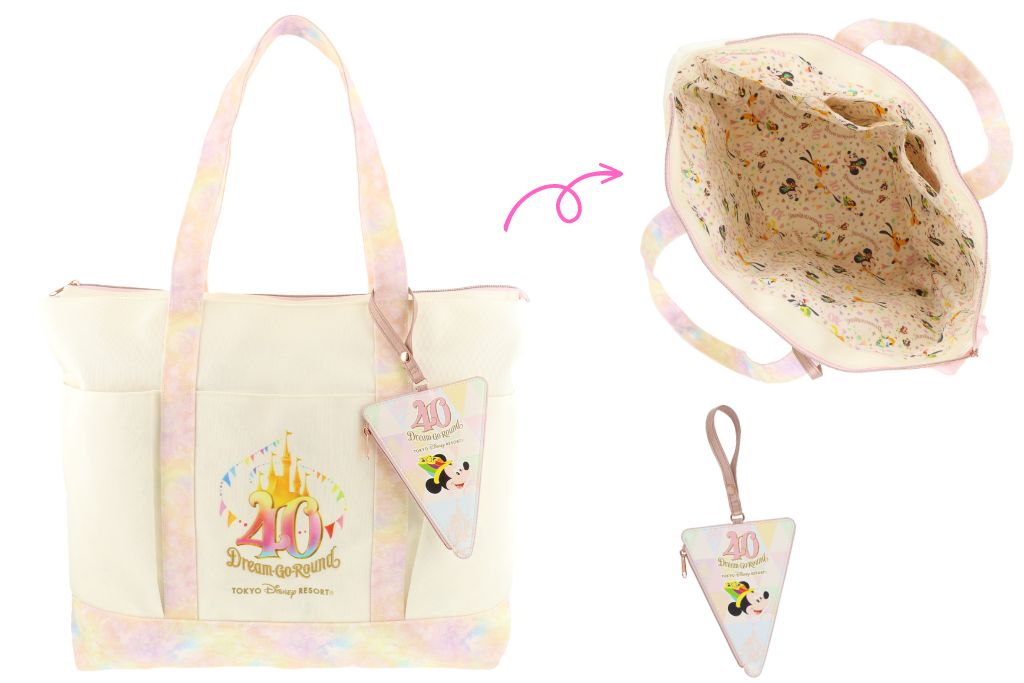 40周年のロゴが大きく描かれた使いやすいトートバッグ。荷物の多いママパパには嬉しいですね。ガーランドの形をしたポーチも付いています!