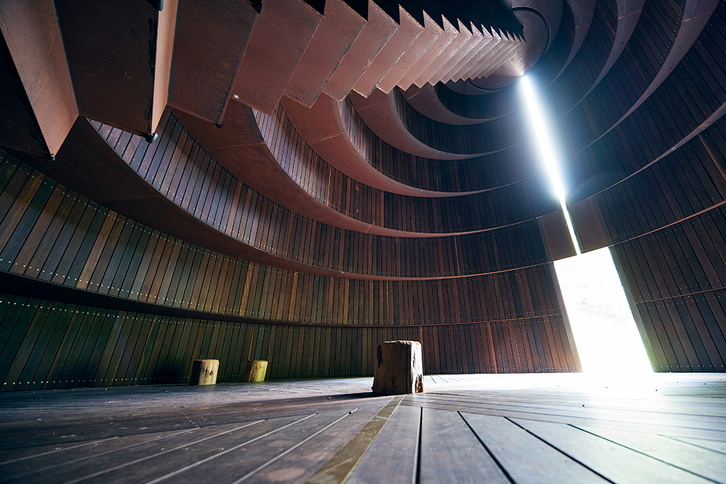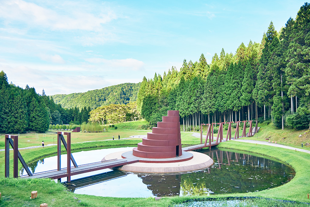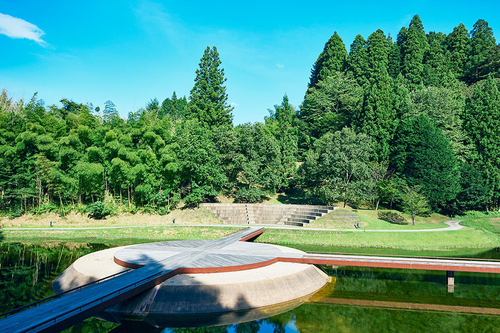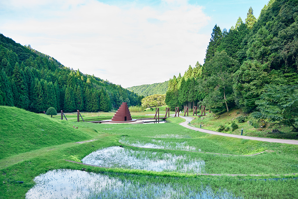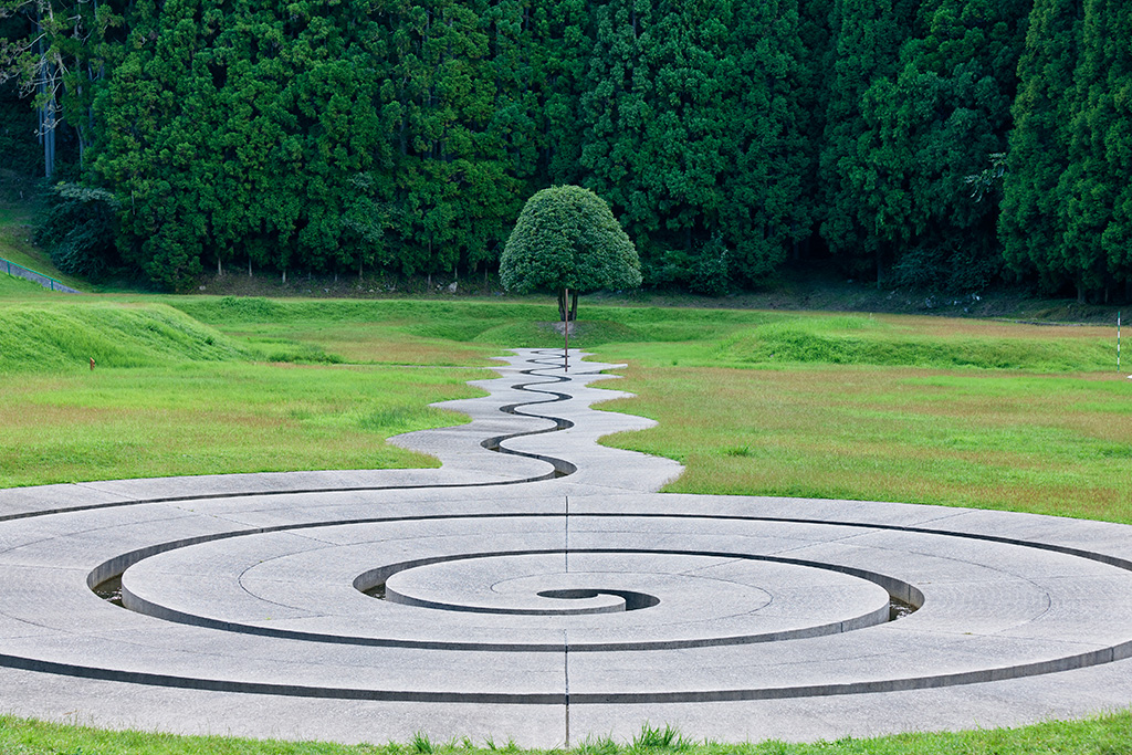 「自然と文化の調和」をテーマとした空間で、建造物が自然地形に溶け込むように作られています。順路は決まっていないので、好奇心のおもむくままに野外アートの空間を楽しみましょう。